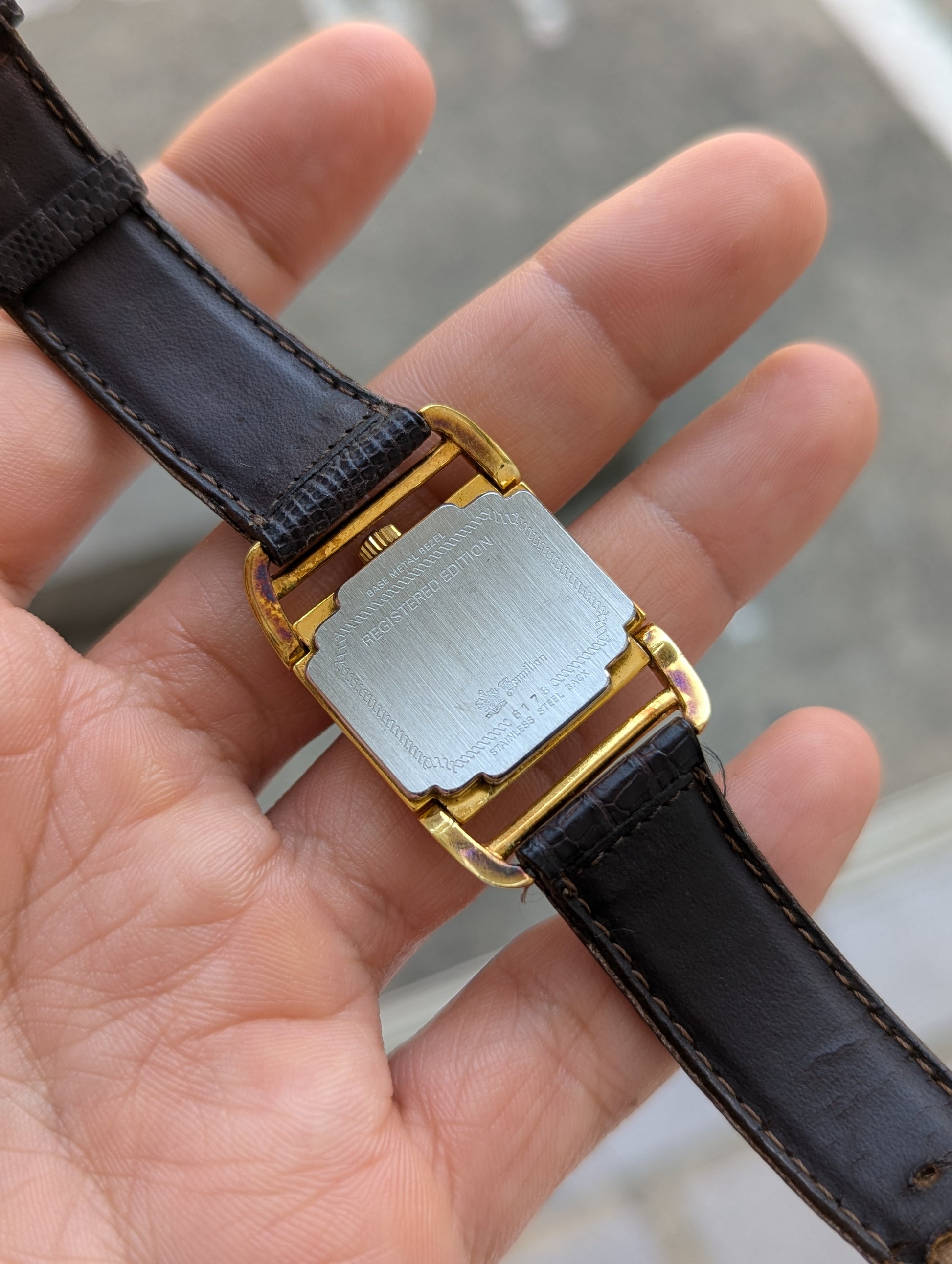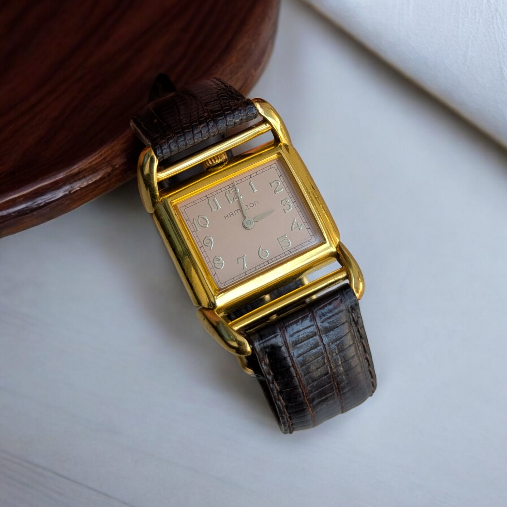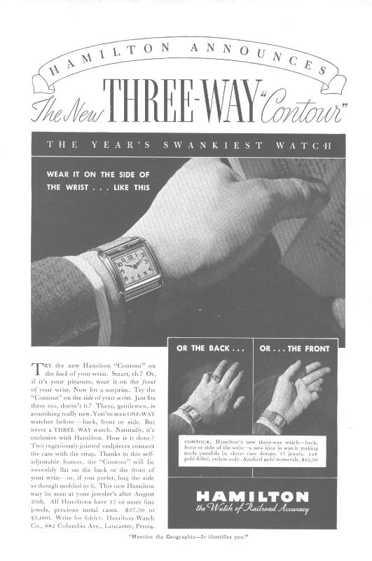 Re-products from the popular and innovative 1938 Contour model that was originally designed for drivers as the watch would conform perfectly to the side of your wrist.